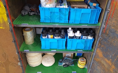 打磨組物料與工具柜放置隨意,不易拿取