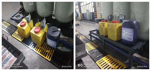 改善前 因超純水藥劑桶無合適空位擺放,一直占用攬溝蓋板,給攬溝清理帶來不必要的麻煩